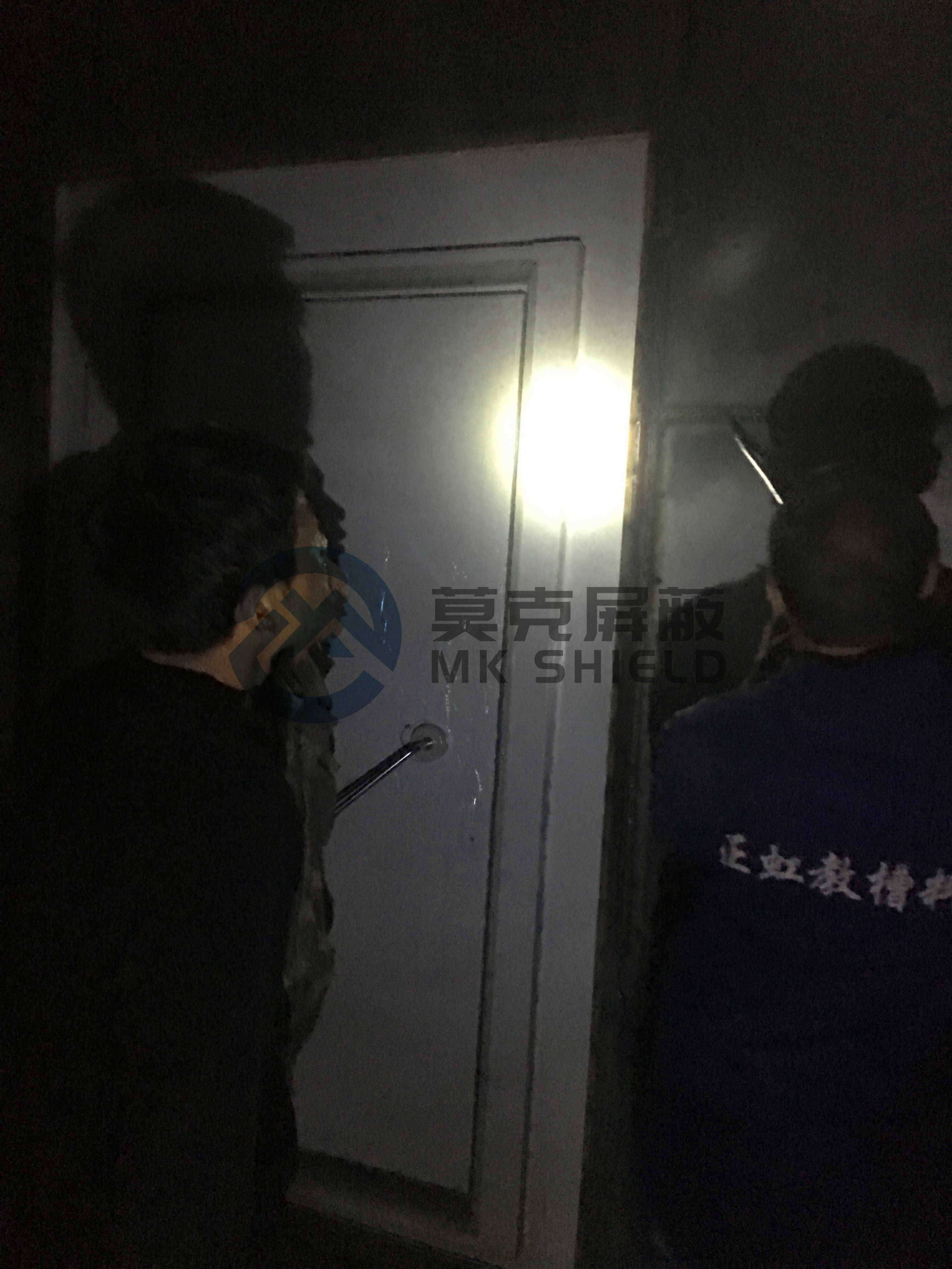 4.屏蔽机房内部装饰:顶部微孔板、墙面采用彩钢板饰面;地面采用600*600mm防静电地板,维护间入口设置在图上位置,屏蔽门安装位置门洞扩大处采用彩钢板装饰,室内电器线路在防静电地板下穿管布控,开关、插座等数量和安装位置应满足甲方使用要求。更多电磁屏蔽机房建设问题请咨询江苏莫克屏蔽科技有限公司。
