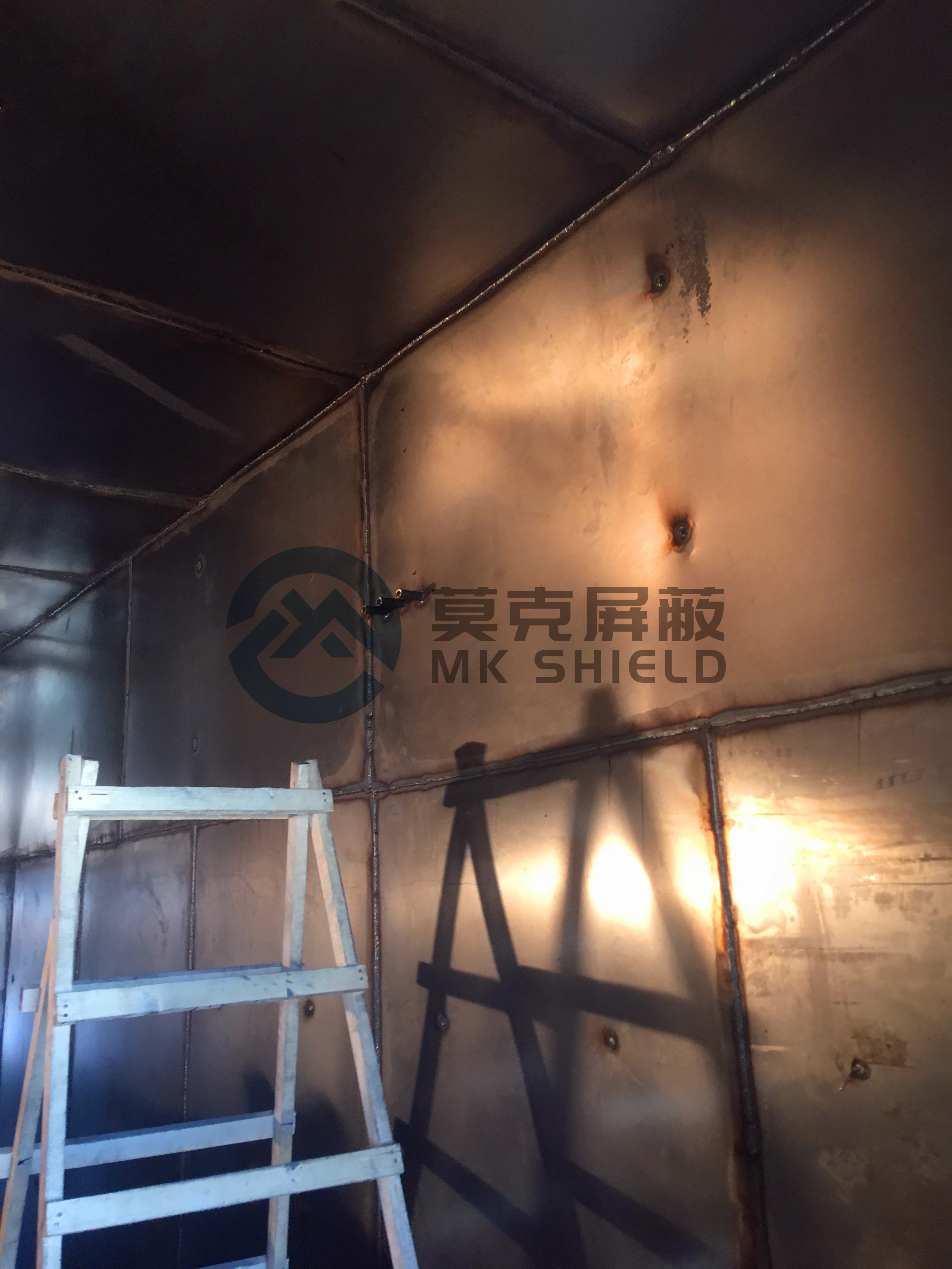 1. 屏蔽机房屏蔽体采用厚度为2-3mm的优质冷轧板,铺设在用矩形管龙骨制作的屏蔽层支撑框架上,现场安装采用二氧化碳气体保护焊接固定,机房底部与地面间采用5mm高强度塑胶板作防潮绝缘处理,顶部作刚度加强处理.如楼面承重不够,应制作承重散力架,确保机房使用安全。整个屏蔽体作防腐油漆处理。更多电磁屏蔽机房建设问题请咨询江苏莫克屏蔽科技有限公司。