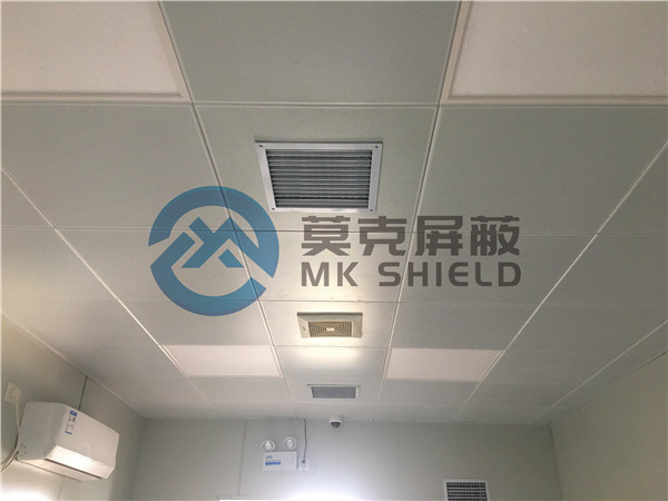 3.屏蔽机房基建尺寸为长3.78*宽5.46*高3米,屏蔽室龙骨距离基建墙30mm,高度预留一部分,最大利用好房间尺寸。配置1.0*2.0米的电动屏蔽门一扇。机房顶部(或屏蔽墙体上)安装通风波导窗300*300mm共6个;具体安装位置可根据现场情况在安装时确定。更多电磁屏蔽机房建设问题请咨询江苏莫克屏蔽科技有限公司。