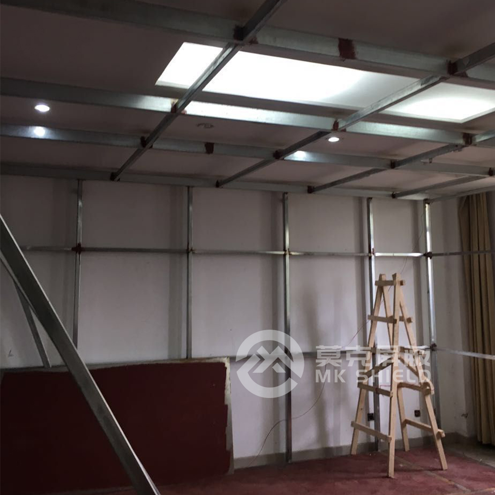 1、电磁屏蔽机房屏蔽壳体墙面、顶面采用厚度为2mm的优质冷轧板,地面采用厚度为3mm的优质冷轧板,铺设在用矩形管龙骨制作的屏蔽层支撑框架上,现场安装采用二氧化碳气体保护焊接固定,机房底部与地面间采用5mm高强度绝缘板作防潮绝缘处理,顶部作刚度加强处理.如楼面承重不够,应制作承重散力架,确保机房使用安全。整个屏蔽体作防腐油漆处理。